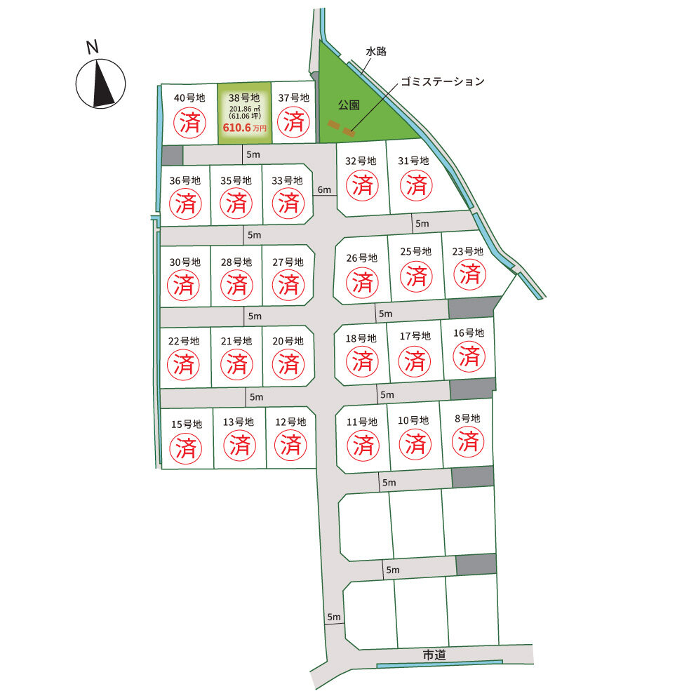 | 道路 | 進入口 :南側(市道:約4.8m) 分譲地内:(開発道路:約5~6m) |