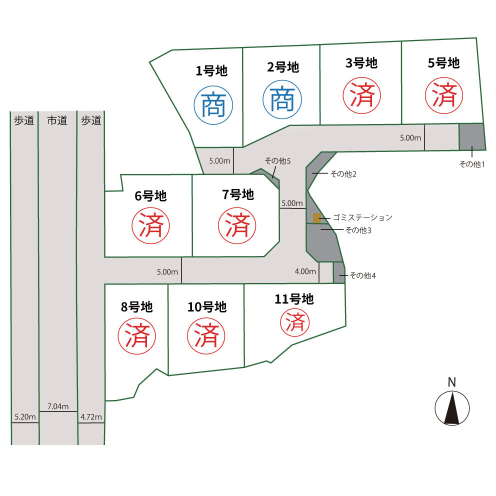 | ゴミステーション | 7号地の東側道路の東部分 市が半数入居しないと収集にこないのでそれまでは業者が回収。 業者回収 : 毎月 3,080円 お客様の口座引落になります |